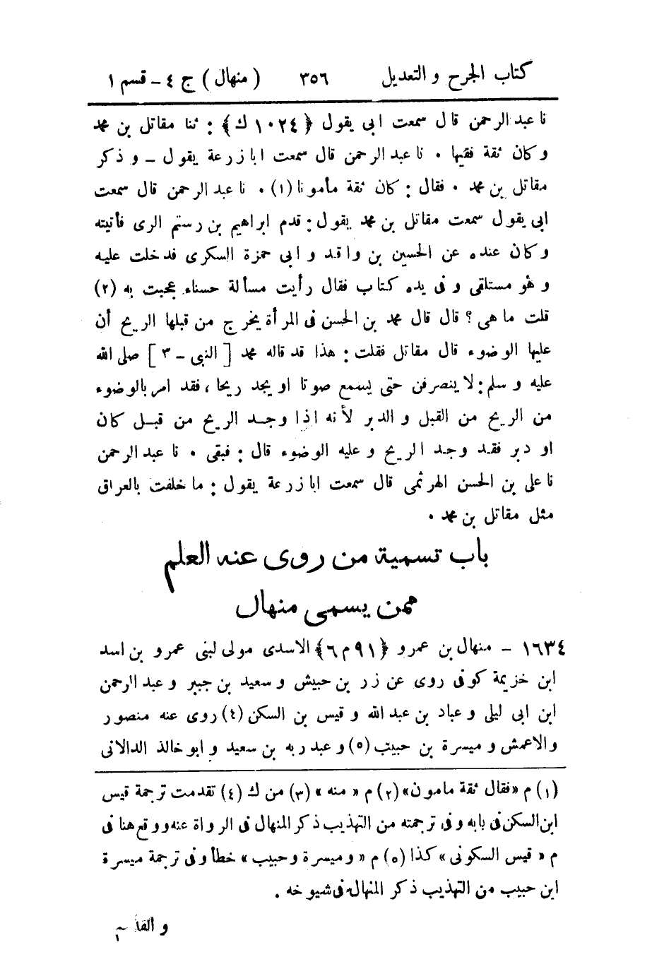 - باب تسمية من رُوي عنه العلم، مِمَّن يُسَمَّى منهال.