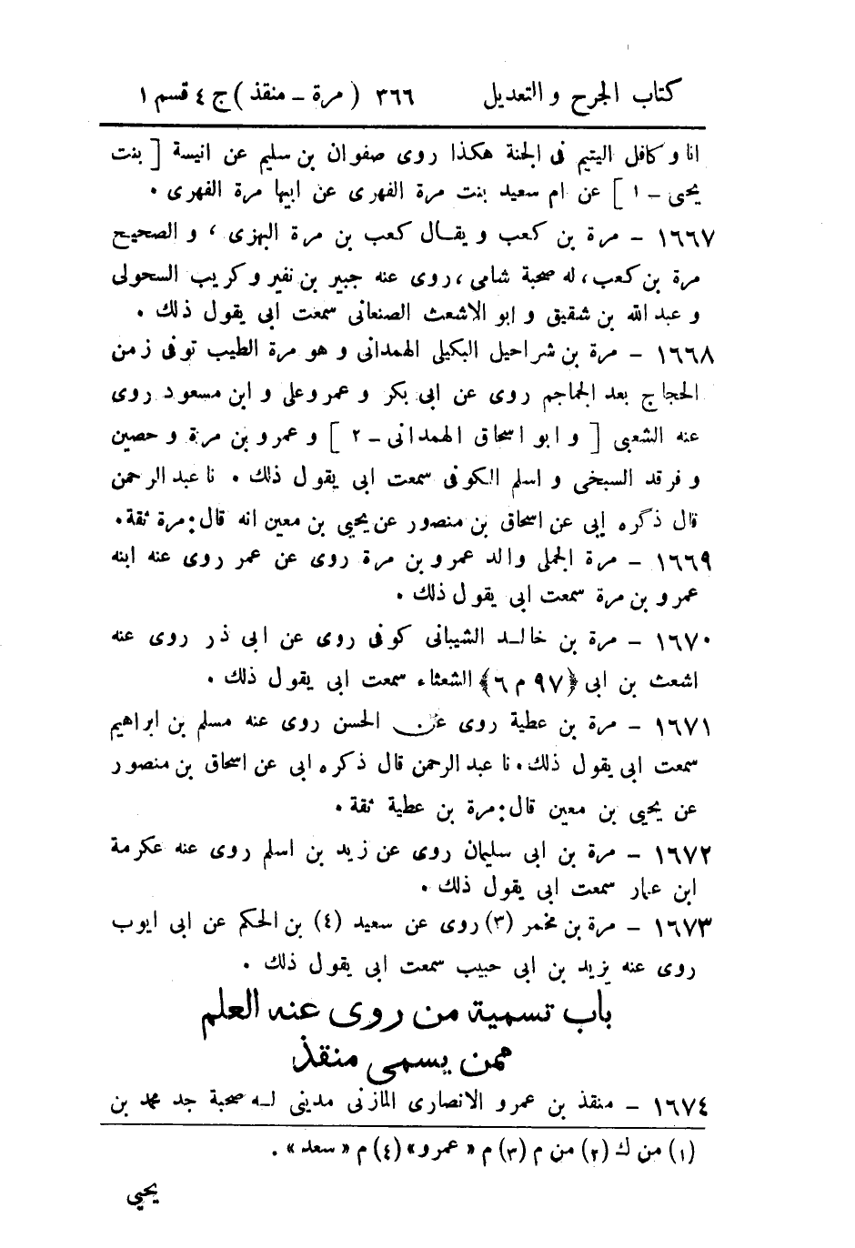 - باب تسمية من رُوي عنه العلم، مِمَّن يُسَمَّى منقذ.