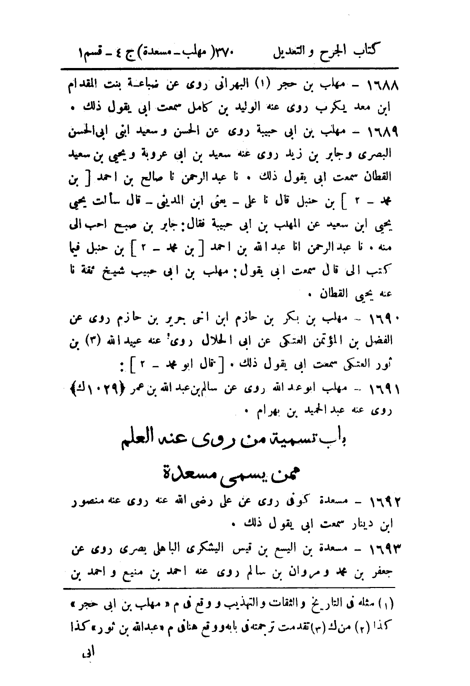 - باب تسمية من رُوي عنه العلم، مِمَّن يُسَمَّى مسعدة.