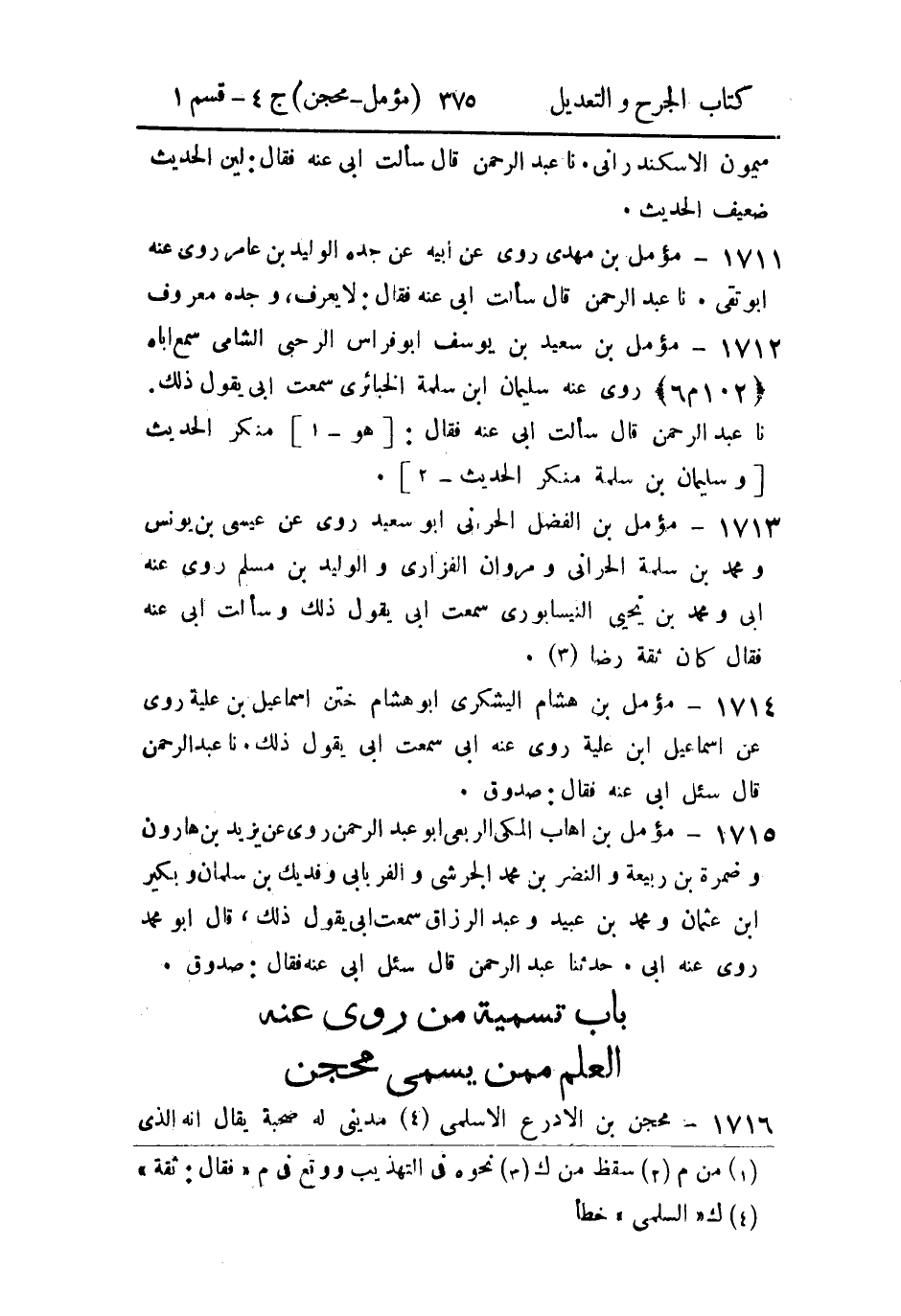 1712- مُؤَمَّل بن سَعيد بن يوسف أَبو فراس الرحبي الشامي.