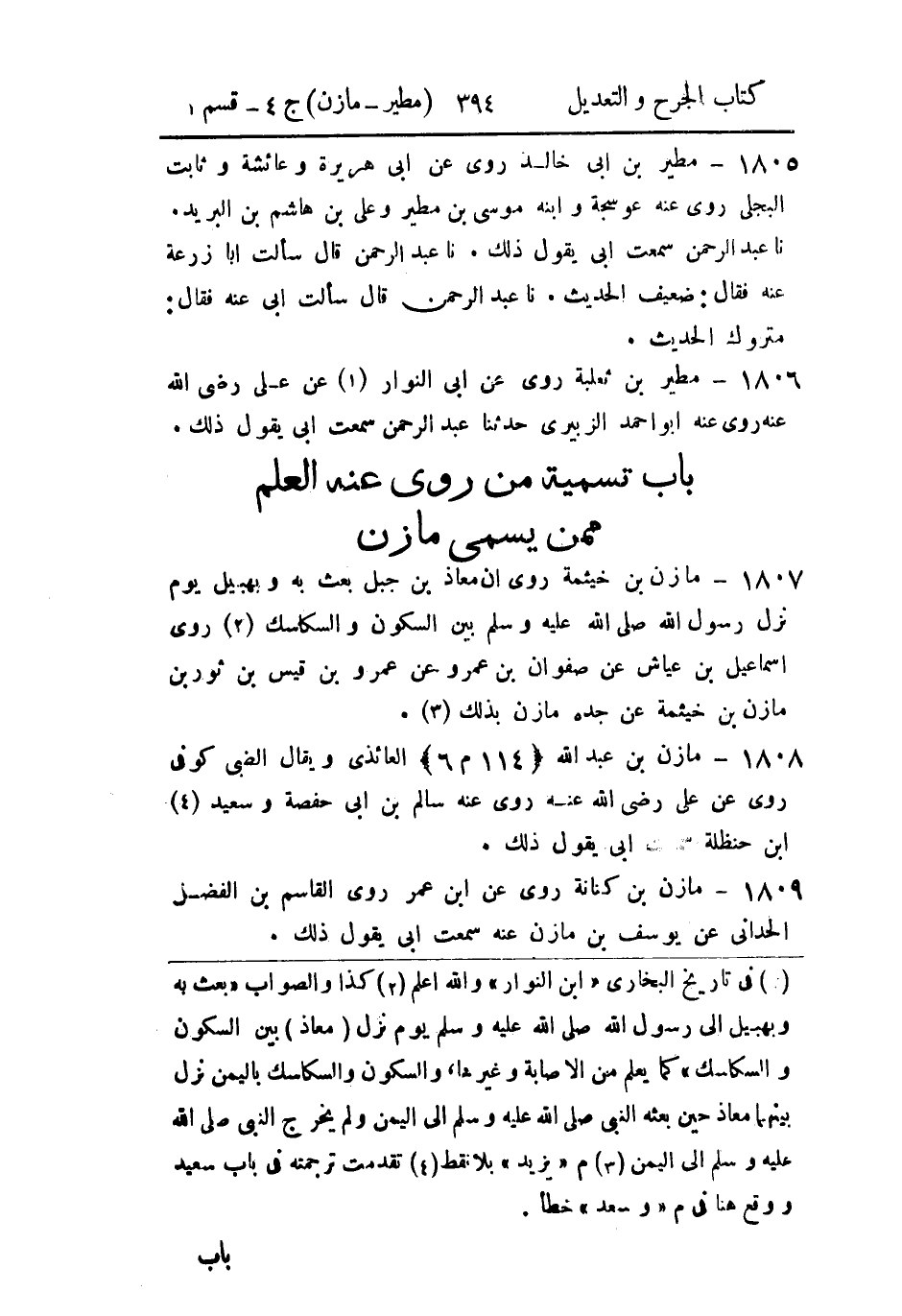 - باب تسمية من رُوي عنه العلم، مِمَّن يُسَمَّى مازن.