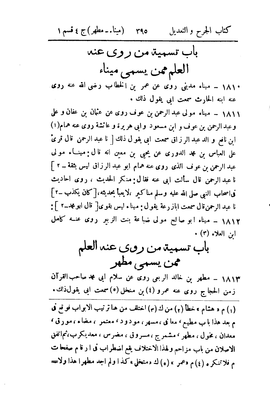 - باب تسمية من رُوي عنه العلم، مِمَّن يُسَمَّى مطهر.