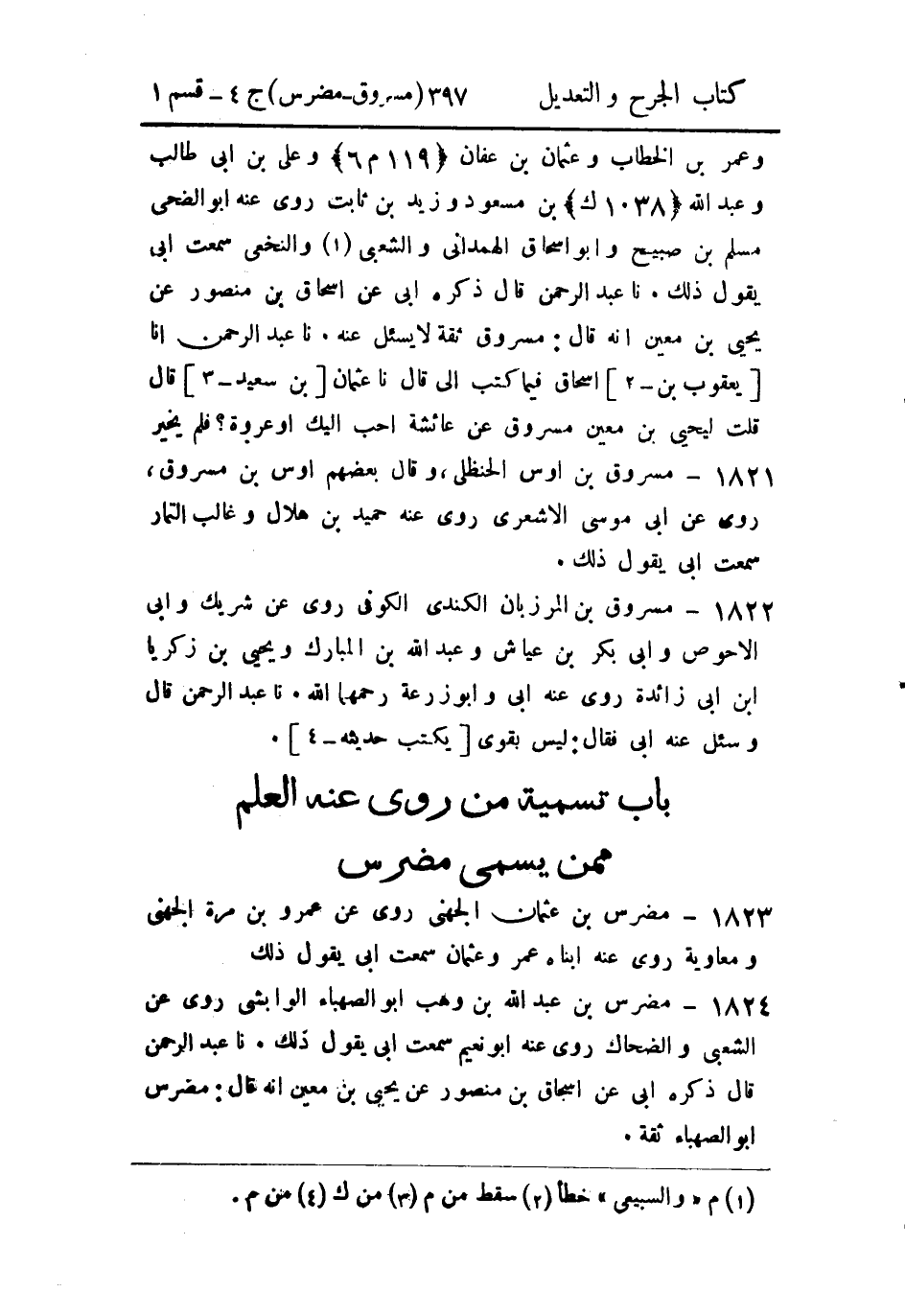 - باب تسمية من رُوي عنه العلم، مِمَّن يُسَمَّى مضرس.