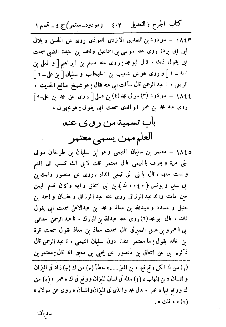 1845- مُعتَمر بن سُليمان التيمي، وهو ابن سليمان بن طرخان، مولى لِبَني مرة ويُعرف بالتيمي.
