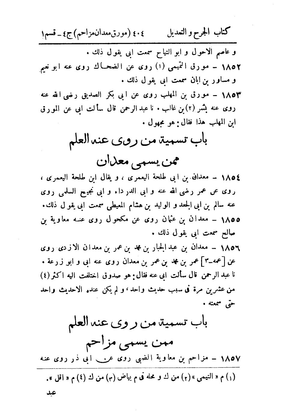 - باب تسمية من رُوي عنه العلم، مِمَّن يُسَمَّى معدان.