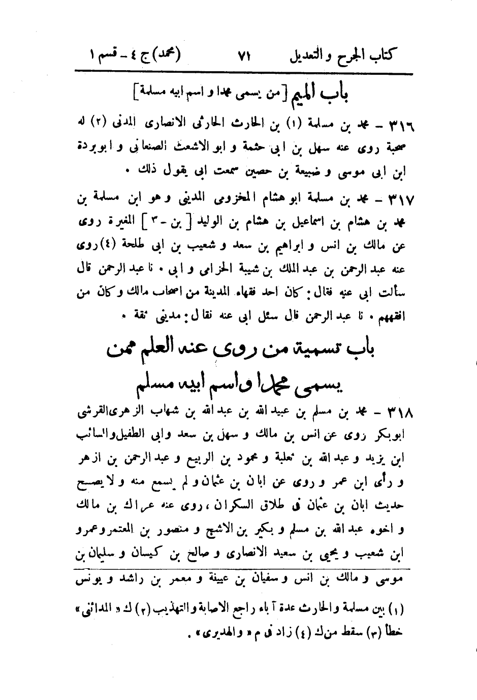 317- محمد بن مسلمة أَبو هشام المخزومي المَديني، وهو ابن مسلمة بن محمد بن هشام بن إِسماعيل بن هشام بن الوليد بن المغيرة.