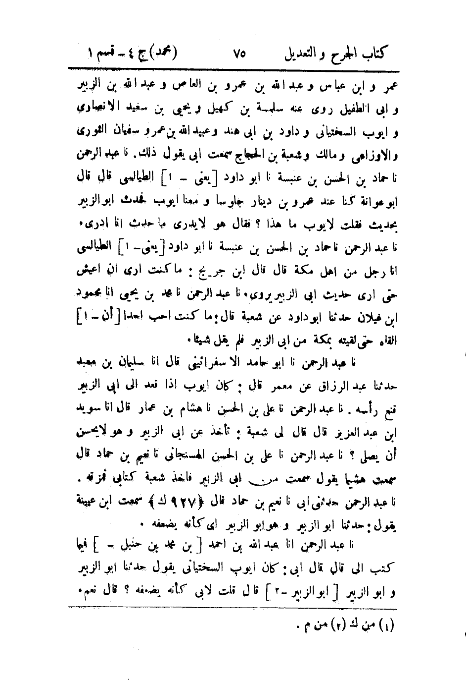 حَدثنا عَبد الرَّحمن، حَدثنا أَبو حامد الإسفرائيني قال، أَخْبَرنا سليمان بن معبد، حَدثنا عَبد الرَّزَّاق، عَن مَعْمَر قال: كان أَيوب إذا قعد إلى أبي الزبير قنع رأسه.