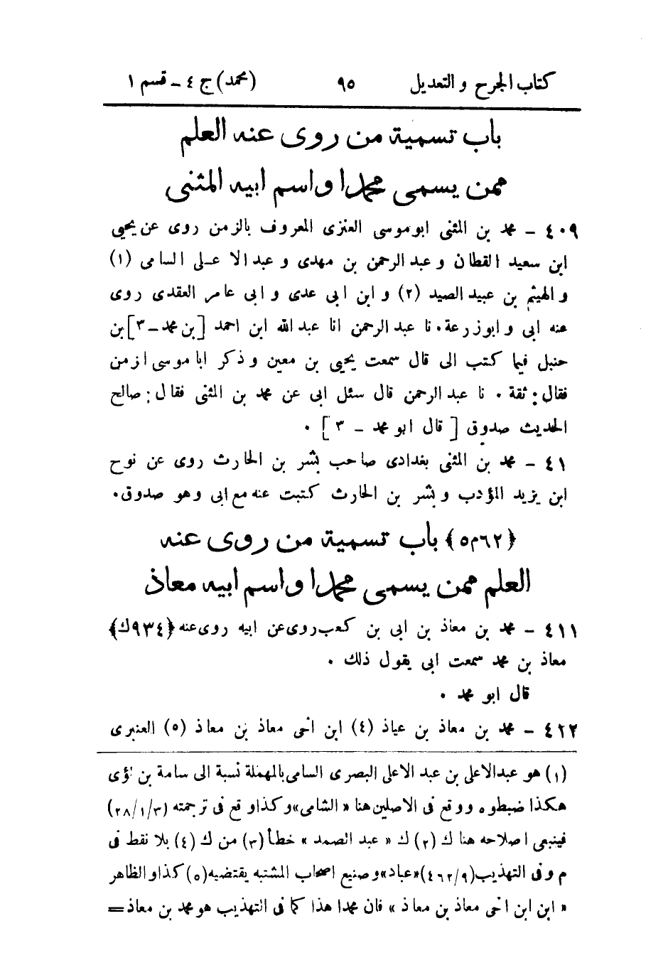 - باب تسمية من رُوي عنه العلم، مِمَّن يُسَمَّى محمداً، واسم أَبيه: المثنى.