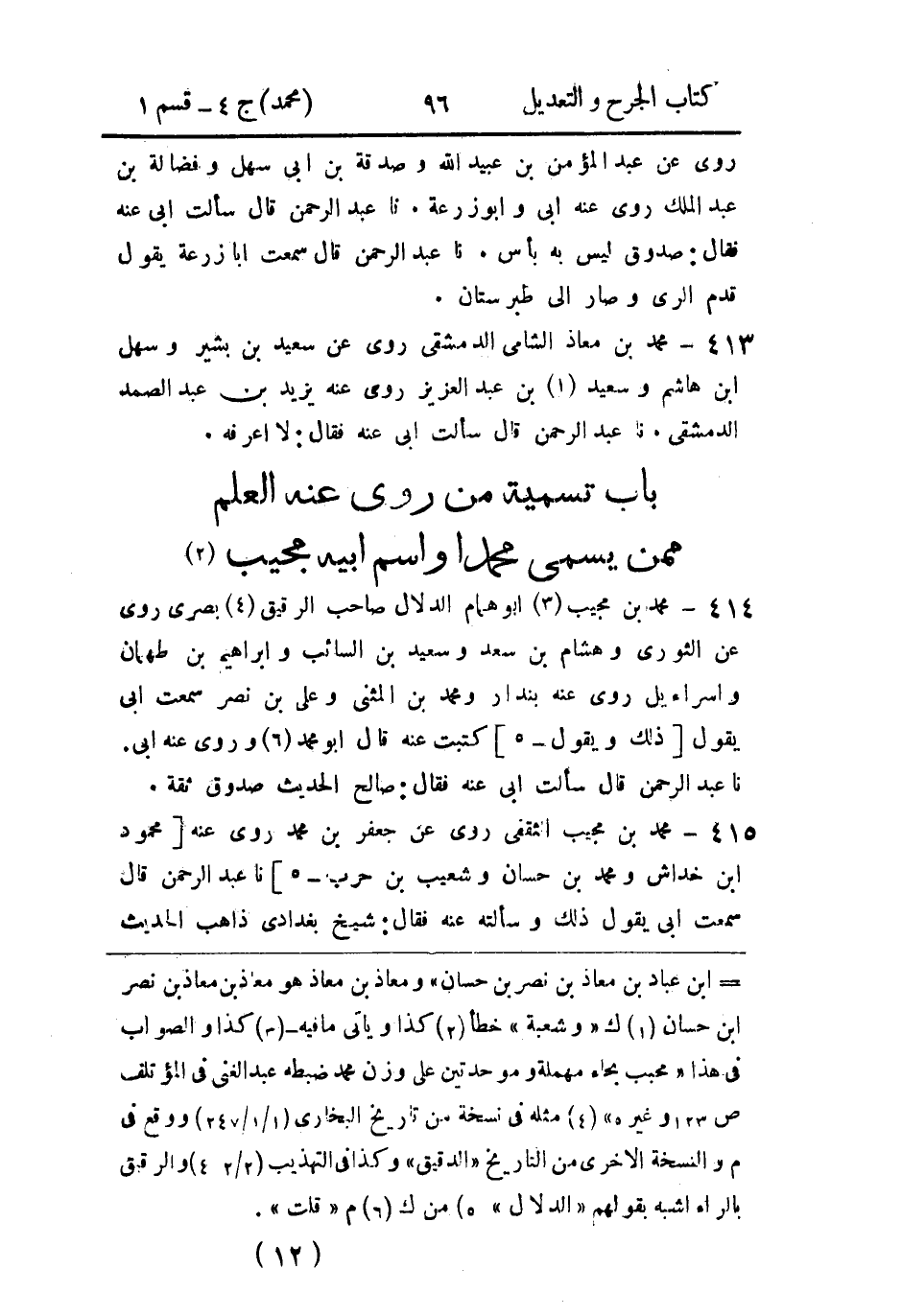 - باب تسمية من رُوي عنه العلم، مِمَّن يُسَمَّى مُحَمدًا، واسم أَبيه مجيب.