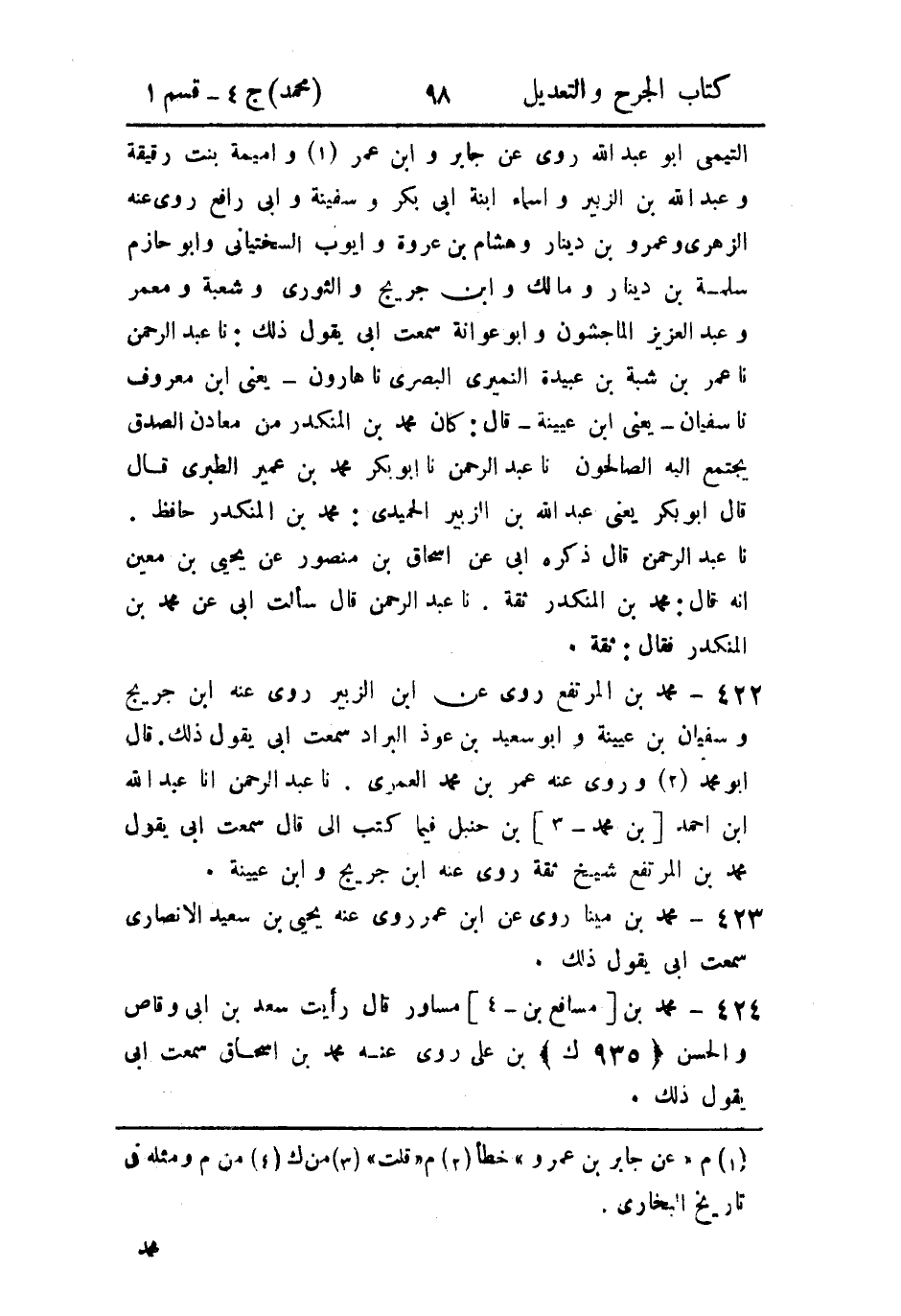 حَدثنا عَبد الرَّحمن، أَخبَرنا عَبد الله بن أَحمد بن محمد بن حَنبل، فيما كَتَبَ إِلَيَّ، قال: سَمِعتُ أَبي يقول: محمد بن المرتفع شيخ ثقة، رَوَى عَنه ابن جُرَيج، وابن عُيَينة.
