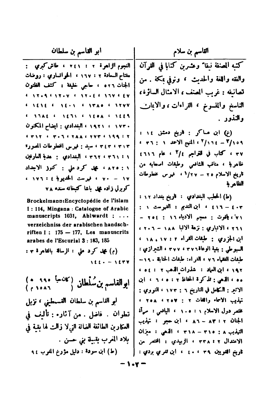 1730، 1921، البغدادي: ايضاح المكنون 2: 199، 273، 288، 306، 312، 313، 343، سيد: فهرس المخطوطات المصورة 1: 361، 362، البغدادي: هدية العارفين 1: 825، محمد كرد علي: كنوز الاجداد 17 - 70، فهرست الخديوية 4: 176، كوبر لي زاده محمد باشا كتبخانه سنده 78 Brockelmann: Encyclopedie de l ' islam I: 411 , Mingana: Catalogue of Arabic..: manuscripts 1301 , Ahlwardt - verzeichniss der arabischen handsch riften I: 571 - 771 , Les manuscrits 185 , 183: 3 arabes de l ' Escurial (م) محمد كرد علي: الرسالة بالقاهرة 3: 1437 - 1440 أبو القاسم بن سلطان (كان حيا 995 هـ) - 1586 م) أبو القاسم بن سلطان القسمطيني، نزيل تطوان.