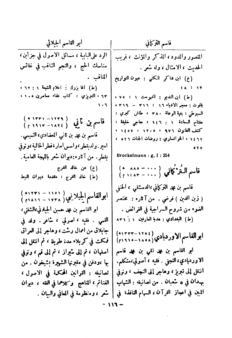 354: Brockelmann: g , I قاسم التركماني (..- 888 هـ) (..- 1483 م) قاسم بن محمد التركماني، الدمشقي، الحنفي (زين الدين) فرضي.