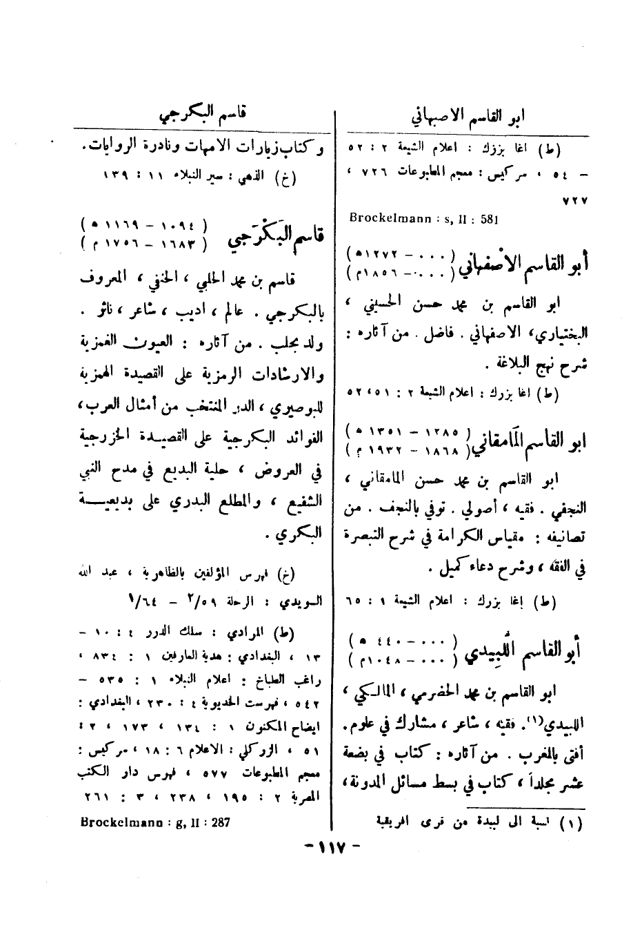 (خ) الذهبي: سير النبلاء 11: 139 قاسم البكرجي (1094 - 1169 هـ) (1683 - 1756 م) قاسم بن محمد الحلبي، الحنفي، المعروف بالبكرجي.