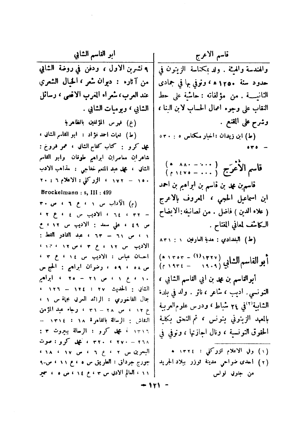 (ط) البغدادي: هدية العارفين 1: 831 أبو القاسم الشابي (1327 (1) - 1353 هـ) (1909 - 1934 م) أبو القاسم بن محمد بن ابي القاسم الشابي، التونسي.