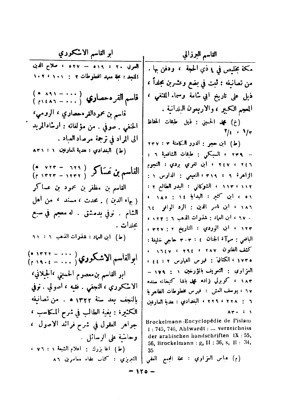 6: 228، 229، البغدادي: هدية العارفين 1: 830 Brockelmann: Encyclopedie de l ' islam I: 547 , 647 , Ahlwardt:..verzeichniss , 55: der arabischen handschriften IX , 34: 65 , Brockelmann: g , II: 63 , s , II 35.