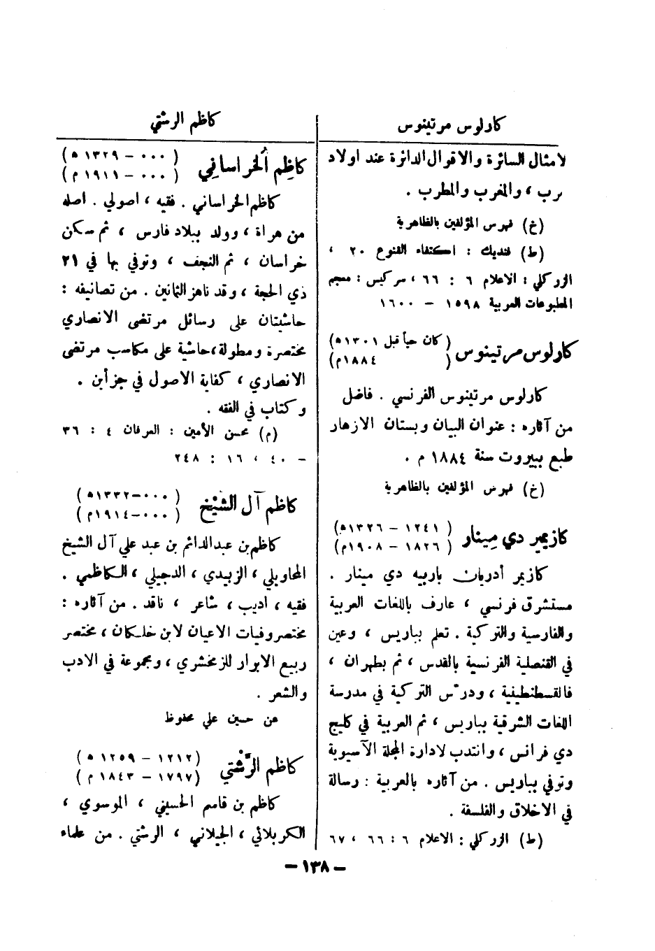 (ط) الزر كلي: الاعلام 6: 66، 67 كاظم الخراساني (..- 1329 هـ) (..- 1911 م) كاظم الخراساني.