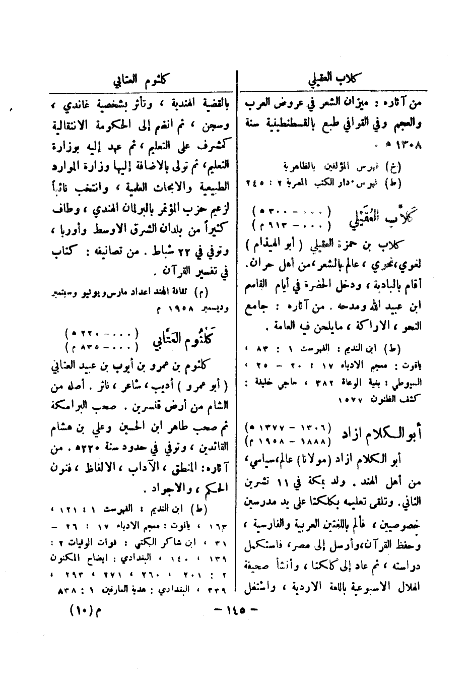 كشف الظنون 1577 أبو الكلام ازاد (1306 - 1377 هـ) (1888 - 1958 م) أبو الكلام ازاد (مولانا) عالم، سياسي، من أهل الهند.