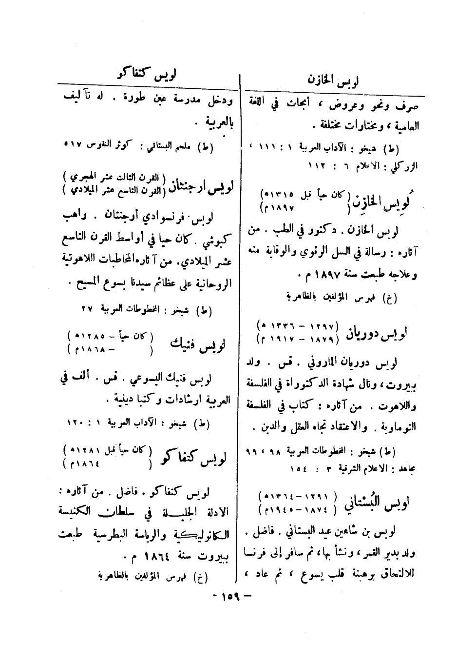 مجاهد: الاعلام الشرقية 3: 154 لويس البستاني (1291 - 1364 هـ) (1874 - 1945 م) لويس بن شاهين عيد البستاني.