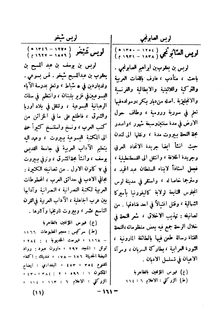 (خ) فهرس المؤلفين بالظاهرية (ط) الزر كلي: الاعلام 6: 114 لويس شيخو (1275 - 1346 هـ) (1859 - 1927 م) لويس بن يوسف بن عبد المسيح بن يعقوب بن عبد المسيح شيخو.
