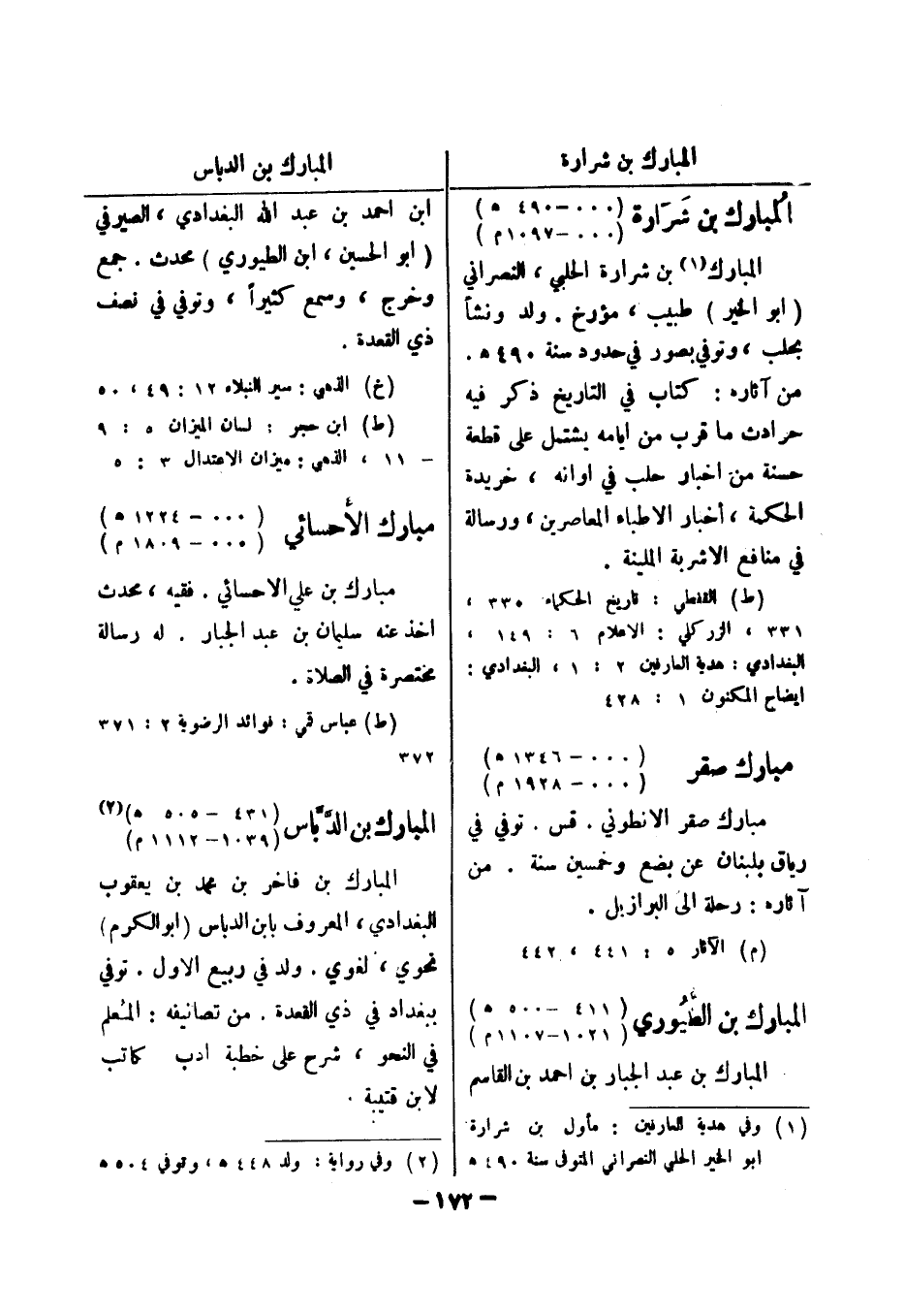 (م) الآثار: 5: 441، 442 المبارك بن الطيوري (411 - 500 هـ) (1021 - 1107 م) المبارك بن عبد الجبار بن احمد بن القاسم