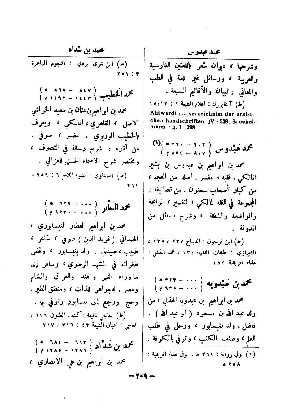 (ط) حاجي خليفة: كشف الظنون 616، العاملي: اعيان الشيعة 43: 216، 217 محمد بن شداد (613 - 684 هـ) (1216 - 1285 م) محمد بن ابراهيم بن علي الانصاري،