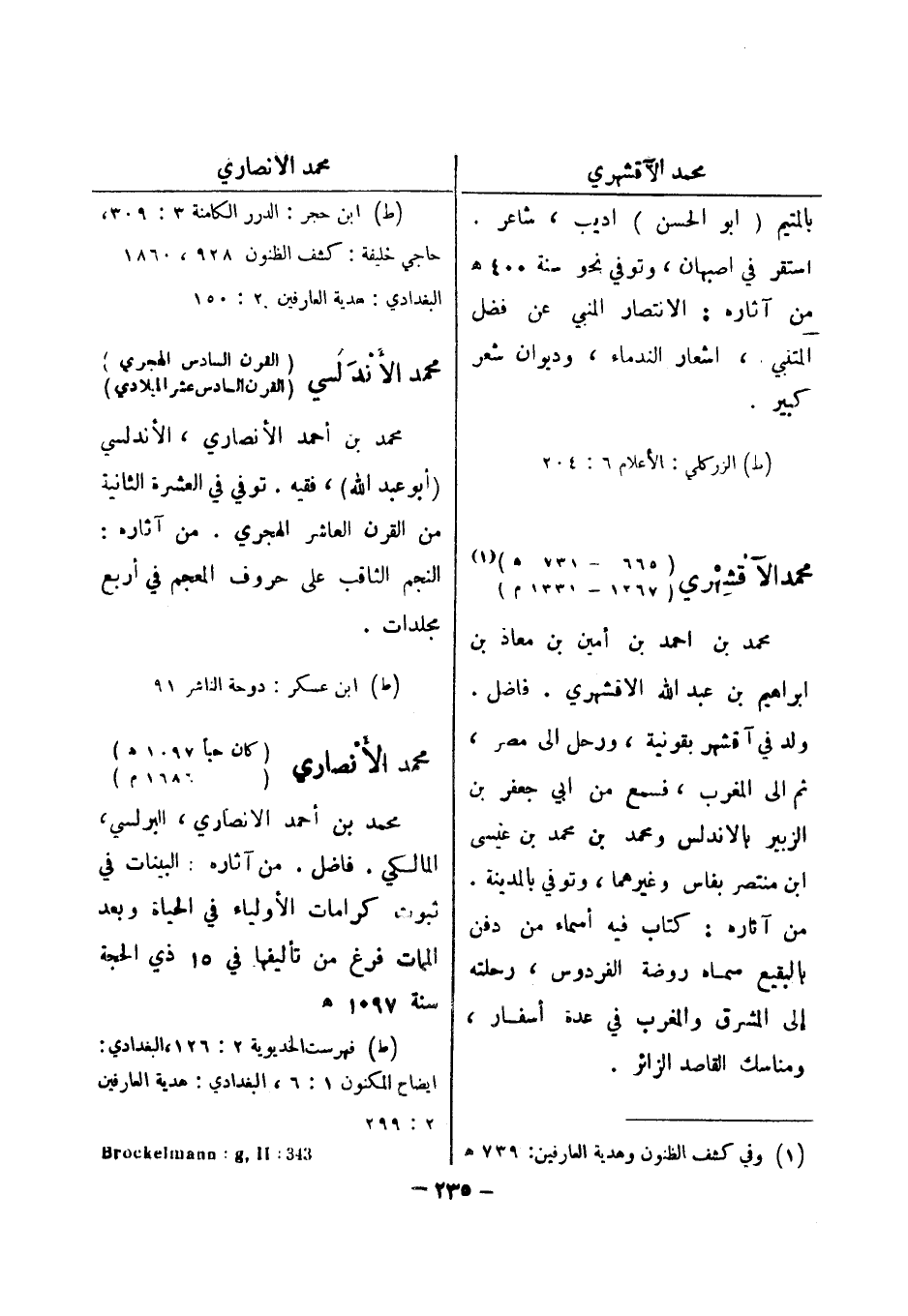 (ط) الزر كلي: الاعلام 6: 204 محمد الآقشهري (665 - 731 هـ) (1) (1267 - 1331 م) محمد بن احمد بن أمين بن معاذ بن ابراهيم بن عبد الله الاقشهري.