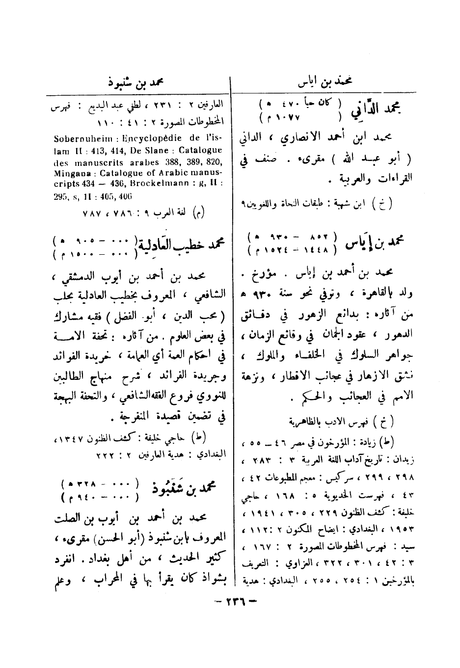 (خ) ابن شهبة: طبقات النحاة واللغويين 9 محمد بن إياس (852 - 930 هـ) (1448 - 1524 م) محمد بن أحمد بن إياس.