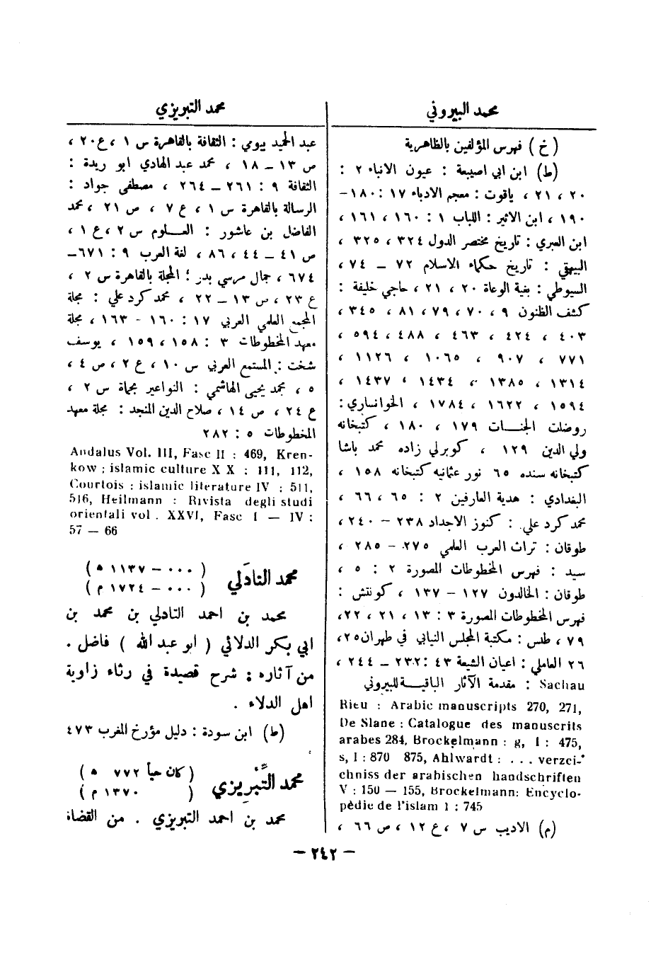 - s , I: 078 078 , Ahlwardt:..verzei chniss der arabischen hadschriften - V: 051 - 551 , Brockelmann: Encyclo 754: pedie de l ' islam I (م) الاديب س 7، ع 12، ص 66، عبد الحميد بيومي: الثقافة بالقاهرة س 1، ع 20، ص 13 - 18، محمد عبد الهادي أبو ريدة: الثقافة 9: 261 - 264، مصطفى جواد: الرسالة بالقاهرة س 1، ع 7، ص 21، محمد الفاضل بن عاشور: العلوم س 2، ع 1، ص 41 - 44، 86، لغة العرب 9: 671 - 674، جمال مرسي بدر: المجلة بالقاهرة س 2، ع 23، ص 13 - 22، محمد كرد علي: مجلة المجمع العلمي العربي 17: 160 - 163، مجلة معهد المخطوطات 3: 158، 159، يوسف شخت: المستمع العربي س 10، ع 2، ص 4، 5، محمد يحيى الهاشمي: النواعير بحماة س 2، ع 24، ص 14، صلاح الدين المنجد: مجلة معهد المخطوطات 5: 282 - Andalus Vol.
