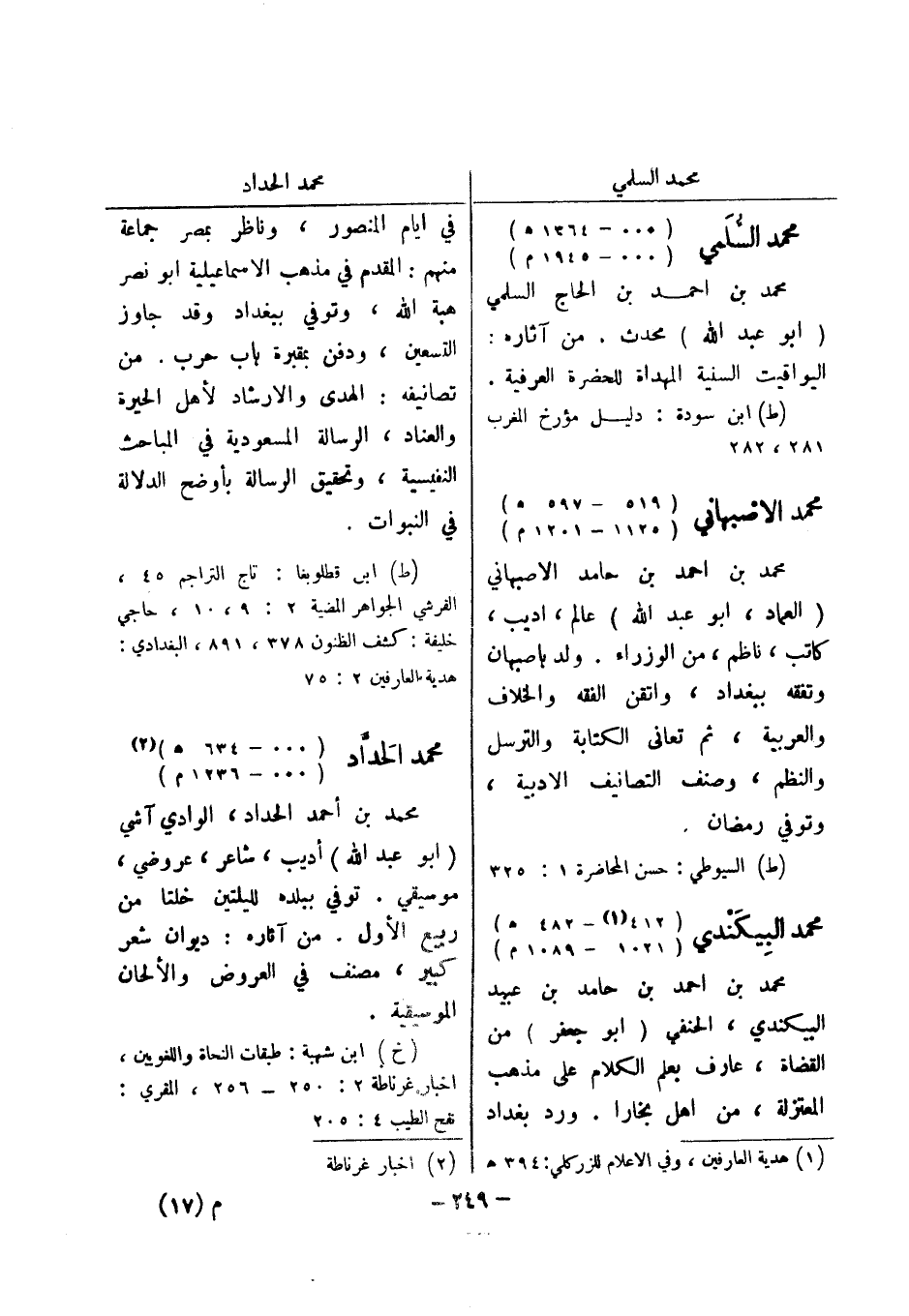 (ط) ابن سودة: دليل مؤرخ المغرب 281، 282 محمد الاصبهاني (519 - 597 هـ) (1125 - 1201 م) محمد بن احمد بن حامد الاصبهاني (العماد، أبو عبد الله) عالم، اديب، كاتب، ناظم، من الوزراء.