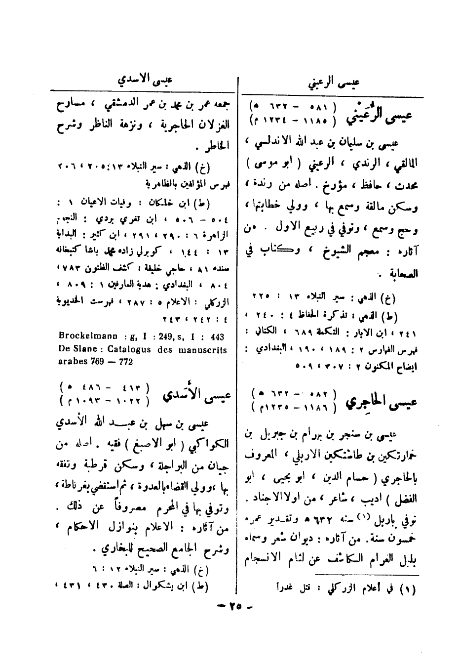 772 - 769 arabes عيسى الاسدي (413 - 486 هـ) (1022 - 1093 م) عيسى بن سهل بن عبد الله الاسدي الكواكبي (أبو الاصبغ) فقيه.