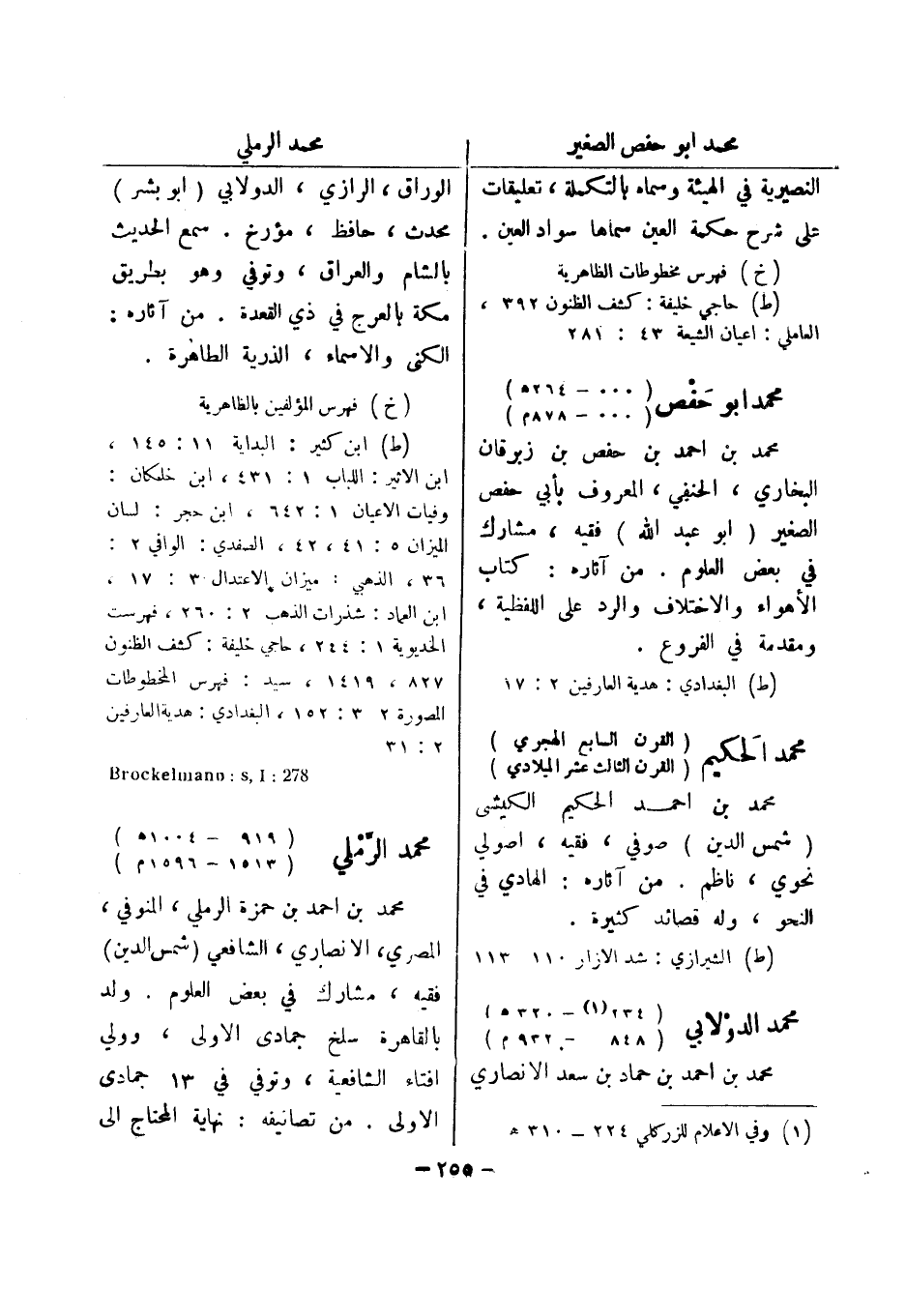 (خ) فهرس المؤلفين بالظاهرية (ط) ابن كثير: البداية 11: 145، ابن الاثير: اللباب 1: 431، ابن خلكان: وفيات الاعيان 1: 642، ابن حجر: لسان الميزان 5: 41، 42، الصفدي: الوافي 2: 36، الذهبي: ميزان الاعتدال 3: 17، ابن العماد: شذرات الذهب 2: 260، فهرست الخديوية 1: 244، حاجي خليفة: كشف الظنون 827، 1419، سيد: فهرس المخطوطات المصورة 3 2: 152، البغدادي: هدية العارفين 2: 31 278: Brockelmann: s , I محمد الرملي (919 - 1004 هـ)