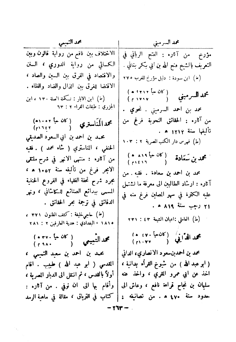 (ط) ابن الابار: تكملة الصلة 130، ابن الجزري: طبقات القراء 2: 63 محمد المناستري (كان حيا 1052 هـ) (1642 م) محمد بن احمد بن ابي السعود الصديقي