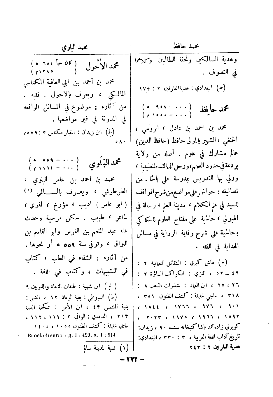 (ط) البغدادي: هدية العارفين 2: 173 محمد حافظ (..- 957 هـ) (..- 1550 م) محمد بن احمد بن عادل، الرومي، الحنفي، الشهير بالمولى حافظ (حافظ الدين) عالم مشارك في علوم.