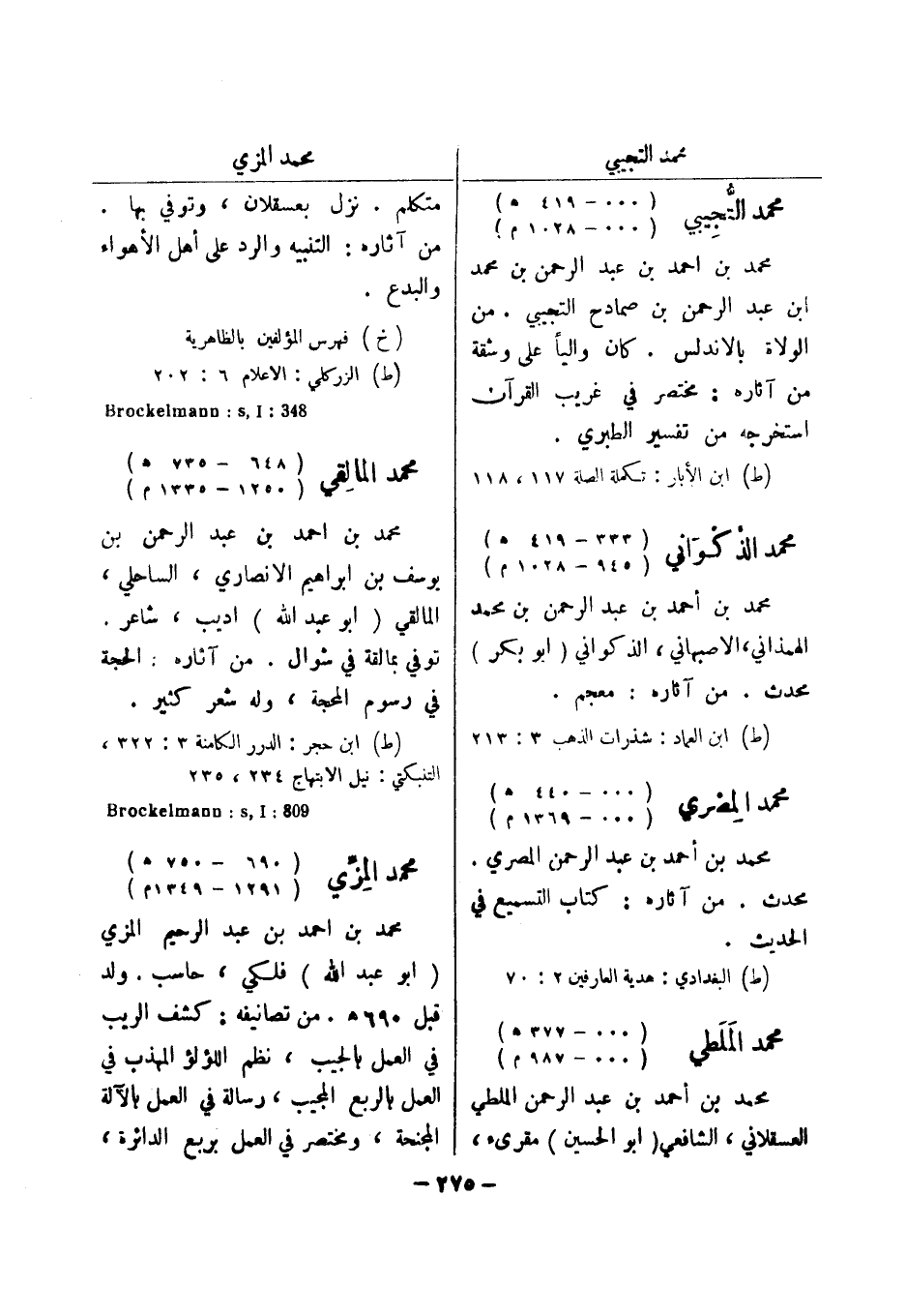 (ط) ابن حجر: الدرر الكامنة 3: 322، التنبكتي: نيل الابتهاج 234، 235 809: Brockelmann: s , I محمد المزي (690 - 750 هـ) (1291 - 1349 م)