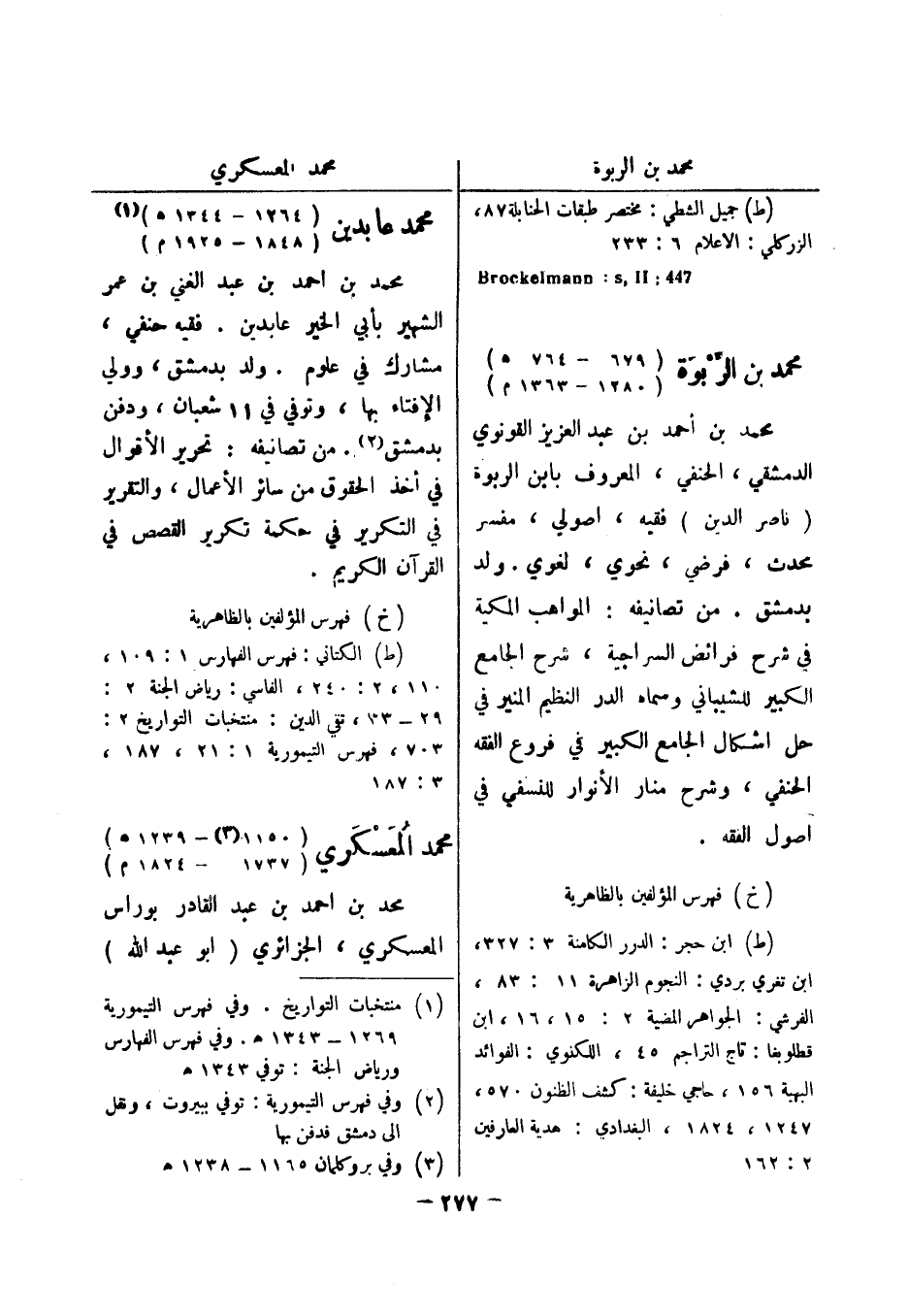 (ط) جميل الشطي: مختصر طبقات الحنابلة 87، الزر كلي: الاعلام 6: 233 447: Brockelmann: s , II محمد بن الربوة (679 - 764 هـ) (1280 - 1363 م) محمد بن أحمد بن عبد العزيز القونوي الدمشقي، الحنفي، المعروف بابن الربوة
