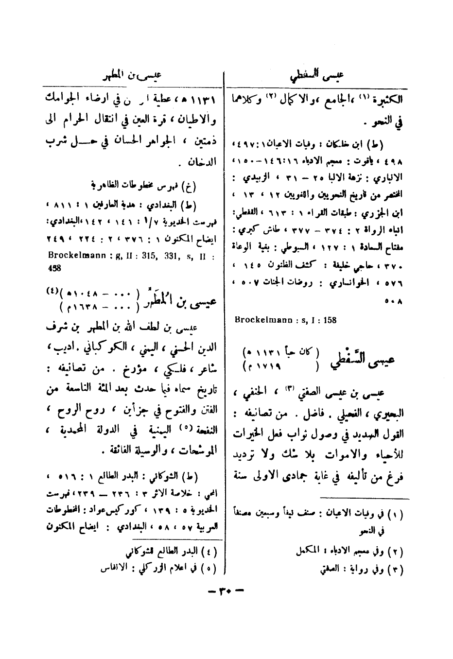 158: Brockelmann: s , I عيسى السفطي (كان حيا 1131 هـ) (1719 م) عيسى بن عيسى الصفتي (3) ، الحنفي، البحيري، الفحيلي.