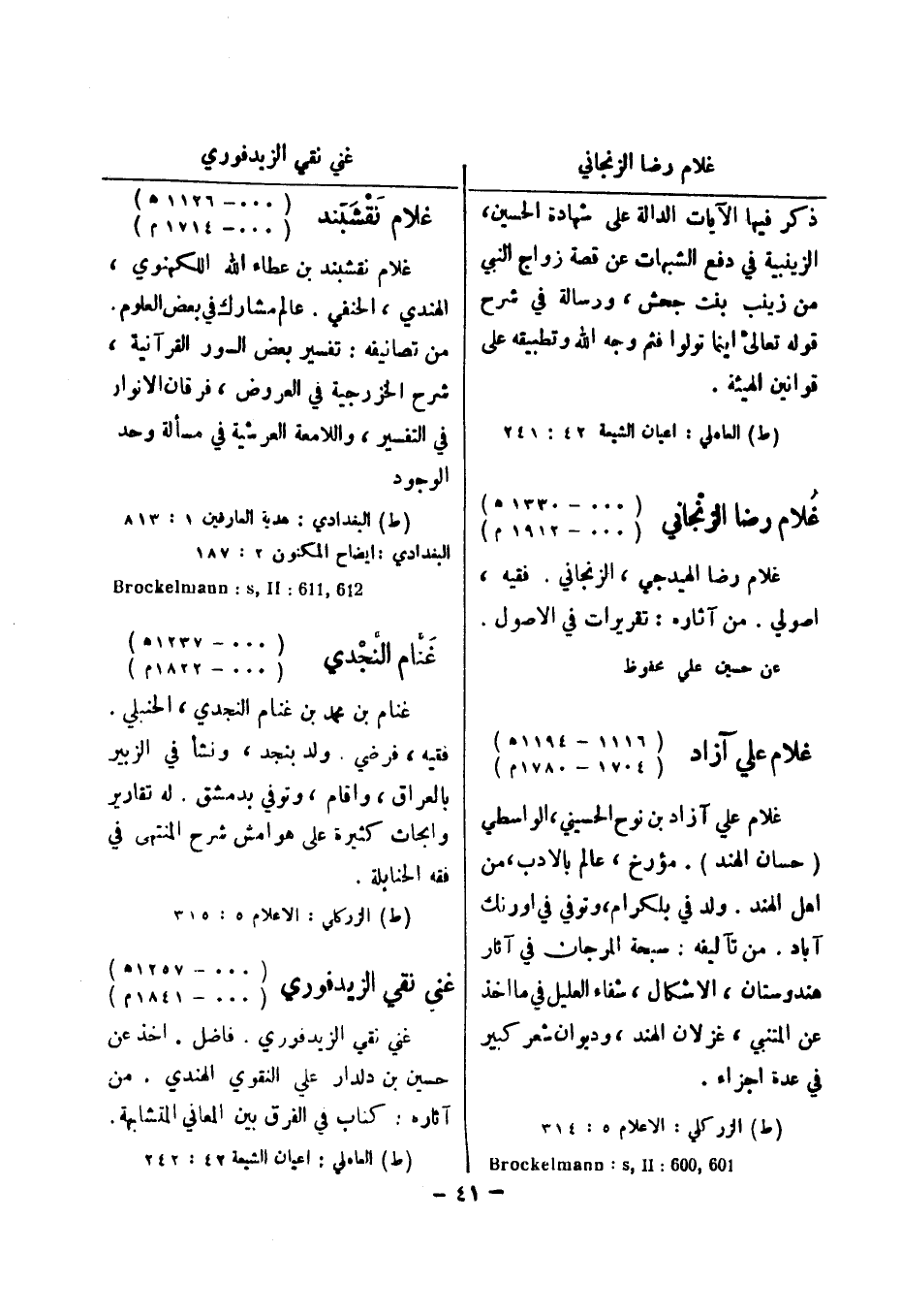 (ط) الزر كلي: الاعلام 5: 314 601 , 600: Brockelmann: s , II غلام نقشبند (..- 1126 هـ) (..- 1714 م) غلام نقشبند بن عطاء الله اللكهنوي، الهندي، الحنفي.
