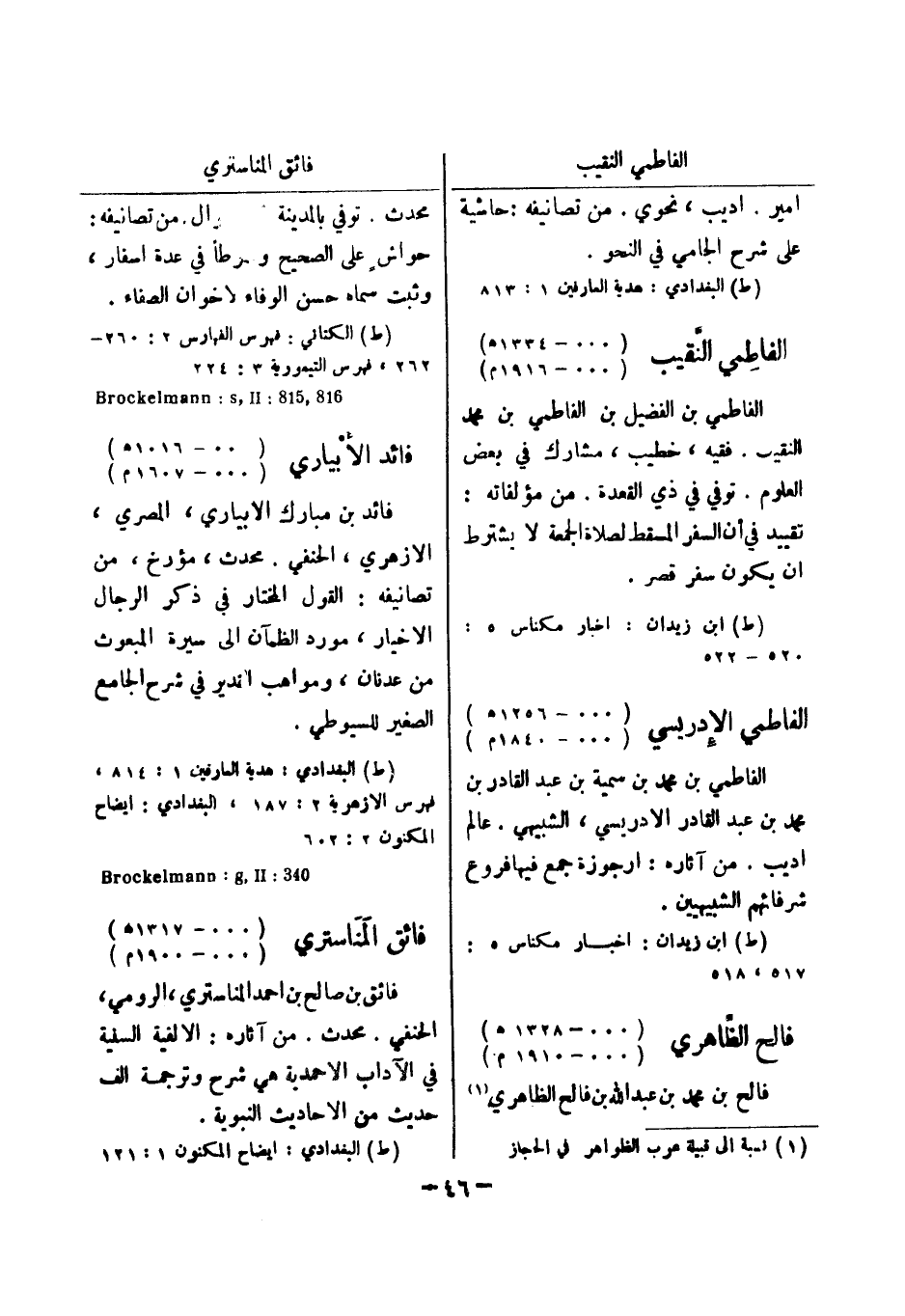 المكنون 2: 602 340: Brockelmann: g , II فائق المناستري (..- 1317 هـ) (..- 1900 م) فائق بن صالح بن احمد المناستري، الرومي، الحنفي.