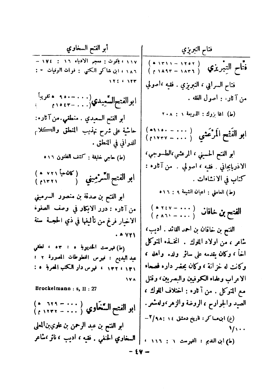 27: Brockelmann: s , II أبو الفتح السخاوي (..- 629 هـ) (..- 1232 م) أبو الفتح بن عبد الرحمن بن علوي بن المعلى السخاوي الحنفي.