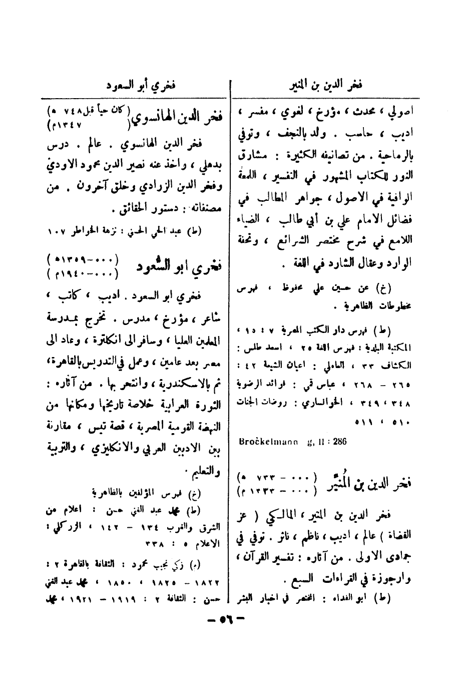 (ط) عبد الحي الحسني: نزهة الخواطر 107 فخري أبو السعود (..- 1359 هـ) (..- 1940 م) فخري أبو السعود.