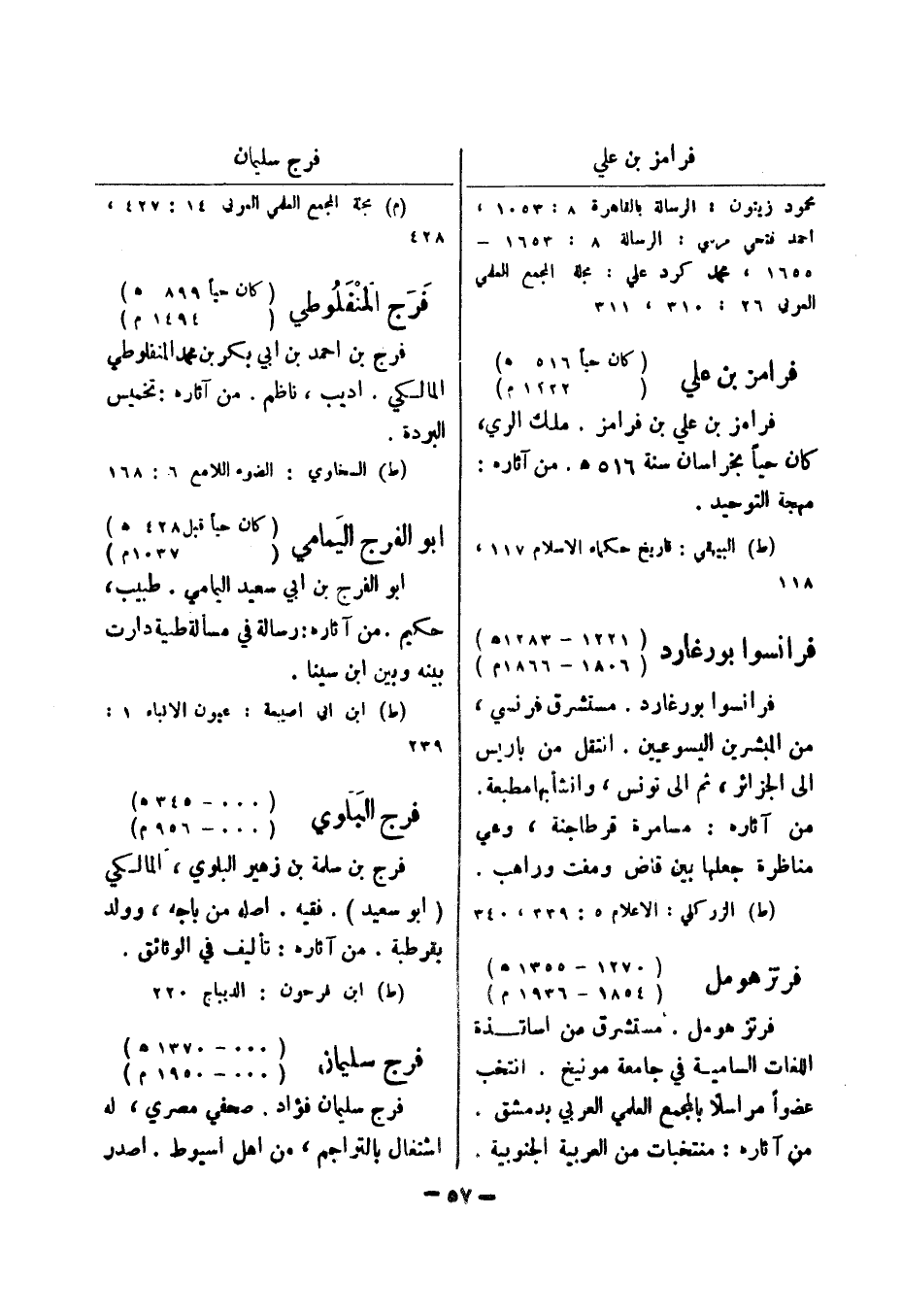 (ط) ابن فرحون: الديباج 220 فرج سليمان (..- 1370 هـ) (..- 1950 م) فرج سليمان فؤاد.