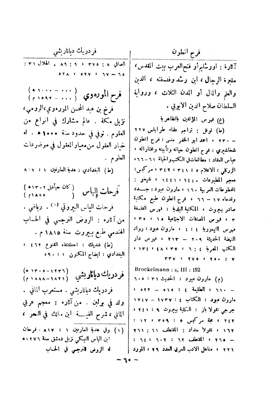 (ط) البغدادي: هدية العارفين 1: 817 فرحات إلياس (كان حيا قبل 1302 هـ) (1885 م) فرحات الياس البيروتي (1) .