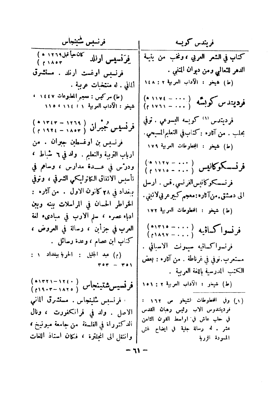 (ط) شيخو: الآداب العربية 2: 148 فرديتدس كوبسه (..- 1174 هـ) (..- 1761 م) فرديتدس (1) كويسه اليسوعي.