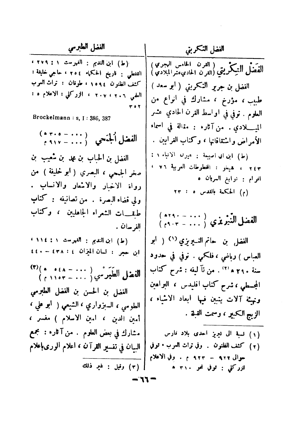 387 , 386: Brockelamnn: s , I الفضل الجمحي (..- 305 هـ) (..- 917 م) الفضل بن الحباب بن محمد بن شعيب بن صخر الجمحي، البصري (أبو خليفة) من رواة الاخبار والاشعار والانساب.