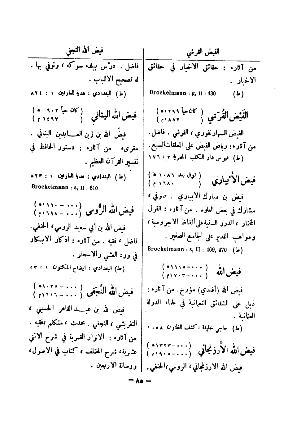 (ط) 430: Brockelmann: g , II الفيض القرشي (كان حيا (1299 هـ) (1882 م) الفيض السهارنفوري، القرشي، فاضل.