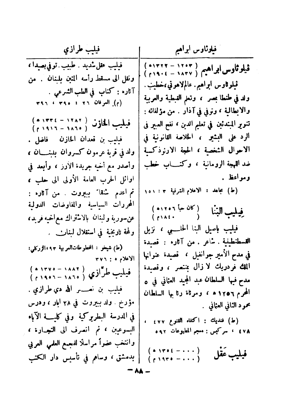 (م) العرفان 26: 395، 396 فيلب الخازن (1282 - 1334 هـ) (1865 - 1916 م)