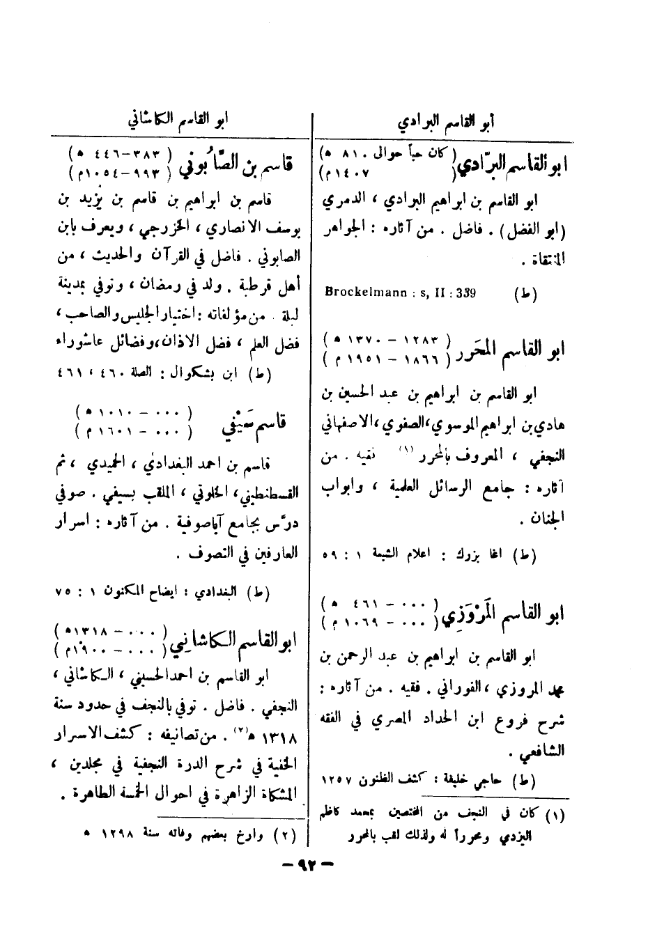 (ط) البغدادي: ايضاح المكنون 1: 75 أبو القاسم الكاشاني (..- 1318 هـ) (..- 1900 م) أبو القاسم بن احمد الحسيني، الكاشاني، النجفي.