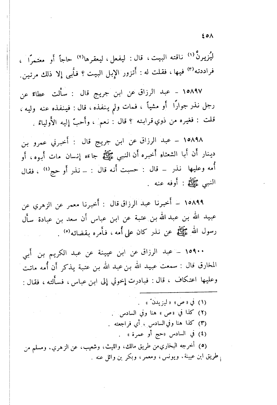 ١٥٨٩٩ - عَبْدُ الرَّزَّاقِ قَالَ: أَخْبَرَنَا مَعْمَرٌ، عَنِ الزُّهْرِيِّ، عَنْ عُبَيْدِ اللَّهِ بْنِ عَبْدِ اللَّهِ بْنِ عُتْبَةَ، عَنِ ابْنِ عَبَّاسٍ، أَنَّ سَعْدَ بْنَ عُبَادَةَ سَأَلَ رَسُولَ اللَّهِ صَلَّى اللهُ عَلَيْهِ وَسَلَّمَ، عَنْ نَذْرٍ كَانَ عَلَى أُمِّهِ «فَأَمَرَهُ بِقَضَائِهِ»