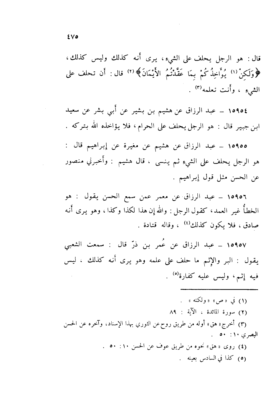 ١٥٩٥٦ - عَنْ مَعْمَرٍ، عَمَّنْ سَمِعَ الْحَسَنَ يَقُولُ: " هُوَ الْخَطَأُ غَيْرُ الْعَمْدِ كَقَوْلِ الرَّجُلِ: وَاللَّهِ إِنَّ هَذَا لِكَذَا وَكَذَا، وَهُوَ يَرَى أَنَّهُ صَادِقٌ فَلَا يَكُونُ كَذَلِكَ "، وَقَالَهُ قَتَادَةُ