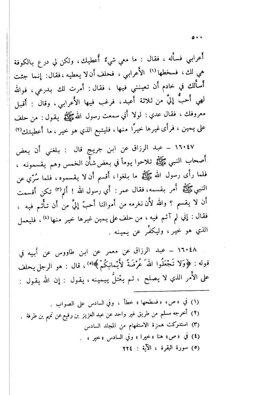١٦٠٤٨ - عَنْ مَعْمَرٍ، عَنِ ابْنِ طَاوُسٍ، عَنْ أَبِيهِ، فِي قَوْلِهِ: {وَلَا تَجْعَلُوا اللَّهَ عُرْضَةً لِأَيْمَانِكُمْ} [البقرة: ٢٢٤] قَالَ: «هُوَ الرَّجُلُ يَحْلِفُ عَلَى الْأَمْرِ الَّذِي لَا يَصْلُحُ ثُمَّ يَعْتَلُّ بِيَمِينِهِ»، وَيَقُولُ: إِنَّ اللَّهَ يَقُولُ: {أَنْ تَبَرُّوا وَتَتَّقُوا} [البقرة: ٢٢٤] يَقُولُ: «هُوَ خَيْرٌ مِنْ أَنْ يَمْضِيَ عَلَى مَا لَا يَصْلُحُ، فَإِنْ حَلَفْتَ كَفَّرْتَ، عَنْ يَمِينِكَ وَفَعَلْتَ الَّذِي هُوَ خَيْرٌ»